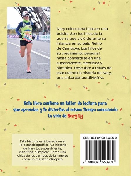Nary colecciona hilos en su bolsita secreta. Son los hilos de la guerra que vivió durante su infancia en su país, Reino de Camboya. Son hilos de diferentes colores de su crecimiento personal hasta convertirse en una superviviente, cienti¿fica y oli¿mpica. que corresponden a las distintas emociones de su vida. Es una historia rica en matices culturales y retos, contada como una aventura a medida que ExtraordiNary crece. Descubre a trave¿s de este cuento la historia de Nary, una chica extraordiNARYa.