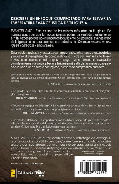 Descubra un m¿¿todo probado para elevar la temperatura evangelizadora de su iglesia. La evangelizaci¿¿n es uno de los valores m¿¿s altos de la iglesia. As¿¿ que, ¿¿por qü¿ tan pocas congregaciones en realidad se esfuerzan en esto? Tal vez se deba a que no entendemos lo suficiente el potencial evangelizador de la iglesia como para entusiasmarnos al respecto. Convi¿¿rtase en una iglesia contagiosa cambiar¿¿ eso. Revisada y actualizada, esta edici¿¿n compendiada dilucida preconceptos obsoletos y revela a la evangelizaci¿¿n como en verdad puede ser. Lo que es m¿¿s, le lleva por un proceso de seis etapas que incluye una flamante herramienta de evaluaci¿¿n para llevar a su iglesia m¿¿s all¿¿ de las meras palabras a la energ¿¿a contagiosa, la acci¿¿n y el compromiso duradero.