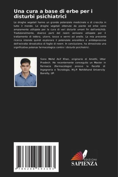 Le droghe vegetali hanno un grande potenziale medicinale e di crescita in tutto il mondo. Le droghe vegetali ottenute da piante ed erbe sono ampiamente utilizzate per la cura di vari disturbi umani fin dall'antichità. Tradizionalmente, diverse parti del neem venivano utilizzate per il trattamento di lebbra, ulcere, tosse e vermi ad anello. La mia presente ricerca intende quindi esplorare il potenziale ansiolitico e antidepressivo dell'estratto idroalcolico di foglie di neem. In conclusione, ha dimostrato una significativa potenza farmacologica contro i disturbi psichiatrici.