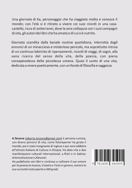 Una giornata di Ka, personaggio che ha viaggiato molto e conosce il mondo; con l'età si è ritirato a vivere coi suoi ricordi in una casa-castello, ricca di sotterranei, dove la sera colloquia con i suoi compagni di vita, gli autori dei libri che ha amato e di cui si è nutrito. Giornata scandita dalla banale routine quotidiana, interrotta dagli annunci di un minaccioso e misterioso pericolo, ma soprattutto intrisa di un continuo labirinto di ripensamenti, ricordi di viaggi, di sogni, alla vana ricerca del senso della vita, della poesia, con piena consapevolezza della piccolezza umana. Quasi il sunto di una vita, dedicata a vivere poeticamente, con un fondo di filosofia.