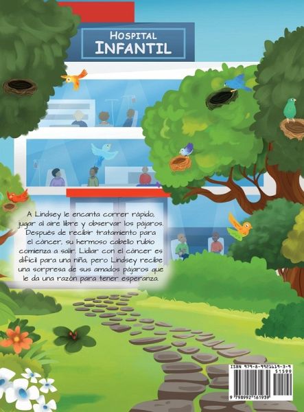 A Lindsey le encanta correr rápido, jugar al aire libre y observar los pájaros. Después de recibir tratamiento para el cáncer, su hermoso cabello rubio comienza a salir. Lidiar con el cáncer es difícil para una niña, pero Lindsey recibe una sorpresa de sus amados pájaros que le da una razón para tener esperanza. Lindsey loves to run fast, play outside, and watch the birds. After receiving treatment for cancer, her beautiful, blonde hair begins to come out. Dealing with cancer is difficult for a young girl, but Lindsey receives a surprise from her beloved birds that gives her a reason to be hopeful.