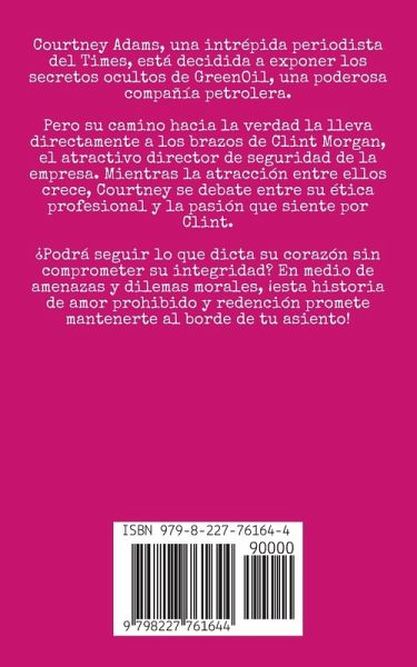 Courtney Adams, una intrépida periodista del Times, está decidida a exponer los secretos ocultos de GreenOil, una poderosa compañía petrolera. Pero su camino hacia la verdad la lleva directamente a los brazos de Clint Morgan, el atractivo director de seguridad de la empresa. Mientras la atracción entre ellos crece, Courtney se debate entre su ética profesional y la pasión que siente por Clint. ¿Podrá seguir lo que dicta su corazón sin comprometer su integridad? En medio de amenazas y dilemas morales, ¡esta historia de amor prohibido y redención promete mantenerte al borde de tu asiento!