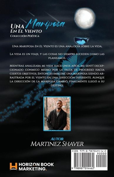 **Desbloquea el Secreto para Superar los Obstáculos de la Vida y Alcanzar Tus Sueños con *Una Mariposa en el Viento*. Descubre el Poder de la Perseverancia y la Fe en Este Relato Inspirador de Resiliencia y Crecimiento.** - **Aprende cómo adaptarte y superar desafíos** con la ayuda del viaje de una mariposa a través del viento. - **Abraza el poder de la fe y la perseverancia** para alcanzar tus metas y sueños, sin importar los obstáculos que se interpongan en tu camino. - **Encuentra orientación y aliento** frente a la adversidad y la incertidumbre. - **Experimenta un viaje transformador de autodescubrimiento y crecimiento personal.** - **Obtén una nueva perspectiva sobre la vida** y su naturaleza impredecible. - **Descubre la belleza y la fortaleza del espíritu humano** frente a la adversidad. - **Encuentra paz y esperanza** en medio de las tormentas de la vida. **En *Una Mariposa en el Viento*, encontrarás: ** - **Una poderosa analogía del viaje de la vida** y la importancia de la flexibilidad y la fe. - **Ejemplos inspiradores de la vida real y relatos con los que podrás identificarte** para ayudarte a navegar a través de los desafíos de la vida. - **Consejos y estrategias prácticas** para superar obstáculos y alcanzar tus metas. - **Orientación para construir resiliencia y fortaleza interior.** - **Herramientas para cultivar una mentalidad positiva** y una visión optimista de la vida. - **Preguntas de reflexión y actividades** para ayudarte a aplicar las lecciones a tu propia vida. - **Un recordatorio para confiar en un poder superior** y tener fe en ti mismo y en tu viaje.