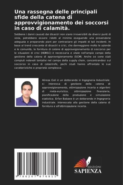 Sebbene i danni causati dai disastri non siano irreversibili da diversi punti di vista, potrebbero essere ridotti al minimo eseguendo una prevenzione adeguata e preparando piani per contrastare gli impatti di tali incidenti. In base al trend crescente di disastri e crisi, che danneggiano molto le aziende e le comunità, la fornitura di catene di approvvigionamento di soccorso per le situazioni di crisi (HDRSC) è necessaria e vitale nell'ampio campo della gestione della catena di approvvigionamento (SCM). Anche se sono stati compiuti notevoli tentativi nel campo della supply chain, concentrandosi sul soccorso in caso di catastrofe, pochi studi hanno affrontato le sue caratteristiche e proprietà complesse.