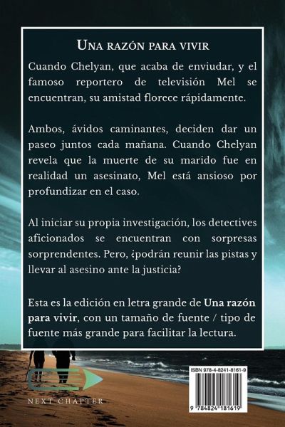 Cuando Chelyan, que acaba de enviudar, y el famoso reportero de televisión Mel se encuentran, su amistad florece rápidamente. Ambos, ávidos caminantes, deciden dar un paseo juntos cada mañana. Cuando Chelyan revela que la muerte de su marido fue en realidad un asesinato, Mel está ansioso por profundizar en el caso. Al iniciar su propia investigación, los detectives aficionados se encuentran con sorpresas sorprendentes. Pero, ¿podrán reunir las pistas y llevar al asesino ante la justicia? Esta es la edición en letra grande de Una razón para vivir, con un tamaño de fuente / tipo de fuente más grande para facilitar la lectura.