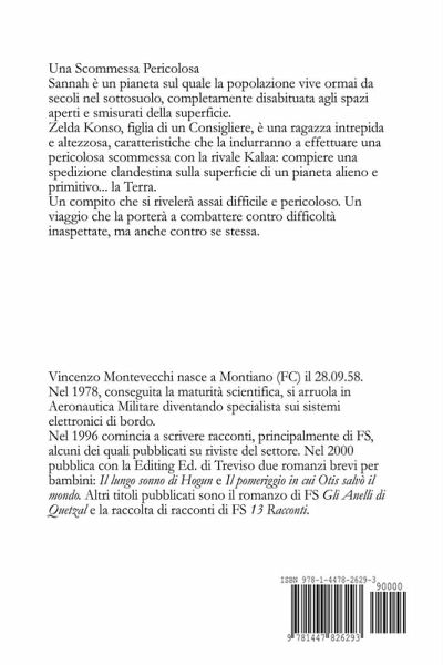 Una Scommessa Pericolosa. Sannah è un pianeta sul quale la popolazione vive ormai da secoli nel sottosuolo, completamente disabituata agli spazi aperti e smisurati della superficie. Zelda Konso, figlia di un Consigliere, è una ragazza intrepida e altezzosa, caratteristiche che la indurranno a effettuare una pericolosa scommessa con la rivale Kalaa: compiere una spedizione clandestina sulla superficie di un pianeta alieno e primitivo... la Terra. Un compito che si rivelerà assai difficile e pericoloso. Un viaggio che la porterà a combattere contro difficoltà inaspettate, ma anche contro se stessa.