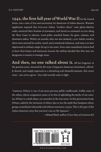 Lawrence DiStasi is an editor, writer, and instructor at UC Berkeley Extension's Fall Freshman Program and has been the project director of the traveling exhibit Una Storia Segreta: When Italian Americans Were 'Enemy Aliens', since 1994. He is author of Mal Occhio: The Underside of Vision (North Point Press, 1981) and Dream Streets: The Big Book of Italian American Culture (Harper & Row, 1989). He is president of the American Italian Historical Association's Western Regional Chapter.