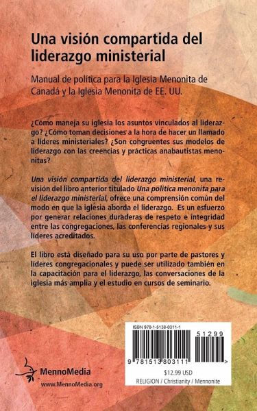 A Shared Understanding of Ministerial Leadership, a revision of an earlier book, A Mennonite Polity for Ministerial Leadership, provides a common understanding of how the church approaches leadership. It is an effort to build lasting relationships of respect and integrity between congregations, area conferences, and their credentialed leaders. For use by pastors and congregational leaders, this book can also be used for leadership training, churchwide discussion, and study in seminary courses.