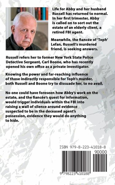"Unaccountable" wraps up the Abby Series, and presents retired New York Police Detective Carl Boone in his own right, while introducing Marianne Bell. Together, Boone and Bell form the basis for the Boone-Bell series. Life for Abby and her husband Russell has returned to normal. Now in her first trimester, Abby is called on to sort out the estate of an elderly client, a retired FBI agent. Meanwhile, the fiancée of 'Toph' Lefan, Russell's murdered friend, is seeking answers. Russell refers her to former New York State Police Detective Sergeant, Carl Boone, who has just opened his own office as a private investigator. Knowing the power and far-reaching influence of those indirectly responsible for Toph's murder, both Russell and Boone try to dissuade her, to no avail. No one could have foreseen how Abby's work on the estate, and the fiancée's quest for information, would trigger individuals within the FBI into raising a wall of silence around evidence suspected to be in the deceased agent's possession, evidence they would do anything to hide.