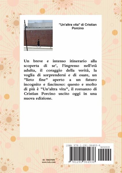 Un breve e intenso itinerario alla scoperta di se', l'ingresso nell'età adulta, il coraggio della verità, la voglia di sorprendersi e di osare, un lieto fine aperto a un futuro incognito e fascinoso: questo e molto di più è "Un'altra vita", il romanzo di Cristian Porcino uscito oggi in una nuova edizione.