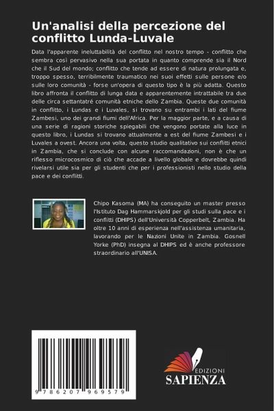 Data l'apparente ineluttabilità del conflitto nel nostro tempo - conflitto che sembra così pervasivo nella sua portata in quanto comprende sia il Nord che il Sud del mondo; conflitto che tende ad essere di natura prolungata e, troppo spesso, terribilmente traumatico nei suoi effetti sulle persone e/o sulle loro comunità - forse un'opera di questo tipo è la più adatta. Questo libro affronta il conflitto di lunga data e apparentemente intrattabile tra due delle circa settantatré comunità etniche dello Zambia. Queste due comunità in conflitto, i Lundas e i Luvales, si trovano su entrambi i lati del fiume Zambesi, uno dei grandi fiumi dell'Africa. Per la maggior parte, e a causa di una serie di ragioni storiche spiegabili che vengono portate alla luce in questo libro, i Lundas si trovano attualmente a est del fiume Zambesi e i Luvales a ovest. Ancora una volta, questo studio qualitativo sui conflitti etnici in Zambia, che si conclude con alcune raccomandazioni, non è che un riflesso microcosmico di ciò che accade a livello globale e dovrebbe quindi rivelarsi utile sia per gli studenti che per i professionisti nello studio della pace e dei conflitti.