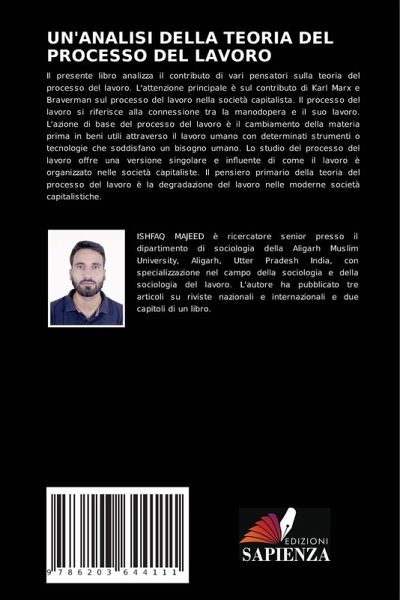 Il presente libro analizza il contributo di vari pensatori sulla teoria del processo del lavoro. L'attenzione principale è sul contributo di Karl Marx e Braverman sul processo del lavoro nella società capitalista. Il processo del lavoro si riferisce alla connessione tra la manodopera e il suo lavoro. L'azione di base del processo del lavoro è il cambiamento della materia prima in beni utili attraverso il lavoro umano con determinati strumenti o tecnologie che soddisfano un bisogno umano. Lo studio del processo del lavoro offre una versione singolare e influente di come il lavoro è organizzato nelle società capitaliste. Il pensiero primario della teoria del processo del lavoro è la degradazione del lavoro nelle moderne società capitalistiche.