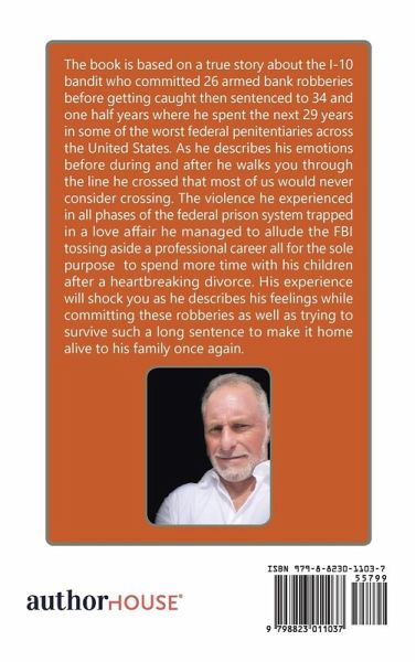 The book is based on a true story about the I-10 bandit who committed 26 armed bank robberies before getting caught then sentenced to 34 and one half years where he spent the next 29 years in some of the worst federal penitentiary's across the United States. As he describes his emotions before during and after he walks you through the line he crossed that most of us would never consider crossing. The violence he experienced in all faze's of the federal prison system trapped in a love affair he managed to allude the FBI tossing aside a professional career all for the sole purpose to spend more time with his children after a heartbreaking divorce. His experience will shock you as he describes his feelings while committing these Robbies as well as trying to survive such a long sentence to make it home alive to his family once again.