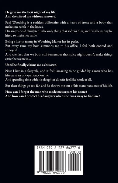 He gave me the best night of my life. And then fired me without remorse. Paul Woodring is a ruthless billionaire with a heart of stone and a body that makes me weak in the knees. His six-year-old daughter is the only thing that softens him, and I'm the nanny he hired to make her smile. Being a live-in nanny in Woodring Manor has its perks. But every time my boss summons me to his office, I feel both excited and annoyed. And the fact that we both still remember that spicy night doesn't make things easier between us... Until he finally claims me as his own. Now I live in a fairytale, and it feels amazing to be guided by a man who has fifteen years of experience on me. And spending time with his daughter doesn't feel like work at all. But then things go too far, and he throws me out of his manor and out of his life. How can I forget the man who made me scream his name? And how can I protect his daughter when she runs away to find me? No cheating, no cliffhangers. HEA guaranteed! Can be read as a standalone.