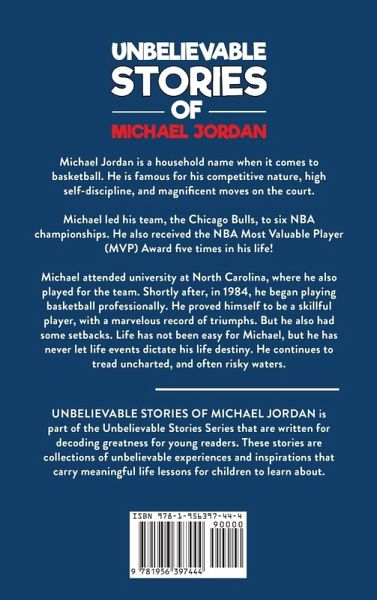 Unbelievable Stories of Michael Jordan: Decoding Greatness For Young Readers (Awesome Biography Books for Kids Children Ages 9-12) (Unbelievable Stories of: Biography Series for New & Young Readers) ¿Uncover the secrets of greatness behind Michael Jordan's success... Learn about how he overcame obstacles to become one of the greatest basketball player of all time! It is widely known that Michael Jordan is a household name when it comes to basketball. He is famous for his competitive nature, high self-discipline, and magnificent moves on the court. We all know that... but... do you know the stories behind all the success? Crazy stories such as the 'flu game' from Michael have us all thinking he's a superhero and maybe unrelatable. However, there are unbelievable stories that we all can relate with that has not been told much by the mass. Within these series, you and your children can discover hidden knowledge and much more from the greats, legends, icons, and 'GOATS'...! ¿ Produced and created by professional writers native in the English language. ¿ Cool and fun hand drawn illustrations in every page! ¿ Unbelievable stories that you may not have heard of before... ¿ Tons of fun for everyone in the family Order Now and Enjoy the Best Stories of Michael Jordan!