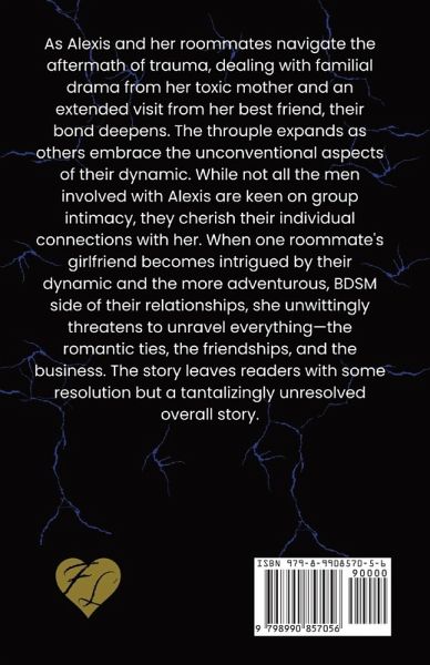 As Alexis and her roommates navigate the aftermath of trauma, dealing with familial drama from her toxic mother and an extended visit from her best friend, their bond deepens. The throuple expands as others embrace the unconventional aspects of their dynamic. While not all the men involved with Alexis are keen on group intimacy, they cherish their individual connections with her. When one roommate's girlfriend becomes intrigued by their dynamic and the more adventurous BDSM side of their relationships, she unwittingly threatens to unravel everything-the romantic ties, the friendships, and the business. The story leaves readers with some resolution but a tantalizingly unresolved overall story. ¿ Romantic Drama ¿ Reverse Harem ¿ Why Choose ¿ Happily Ever After ¿ Multiple Tropes With Five MMCs ¿ Forced Proximity ¿ Innocent Cohabitation ¿ Friends to Lovers ¿ Colleague Romance ¿ Single Dad ¿ Millionaire ¿ Jock / Nerd ¿ Doctor / Patient ¿ Boss / Employee ¿ Grumpy / Sunshine ¿ Dom / Sub ¿ PLEASE REVIEW TRIGGER WARNINGS Trigger Warnings Listed are for Complete Trilogy (may or may not be present in each book): Alcohol, Anxiety, BDSM, Blindfolds, Blood, Breath Play (Sexual Asphyxiation), Car Accident, Cheating, Coma, Death, Depression, Divorce, Drugs, Dubious Consent, Grief & Depiction of Death of a Child/Significant Other, Hospitalization, Molestation (Historical False Accusation), Physical Injury, Polyamory (Consensual), Profanity, Post Traumatic Stress Disorder, Severe Illness, Rough Sex (Consensual), Sexually Explicit Scenes, Slut Shaming, Suicide, Toxic Parental Relationships