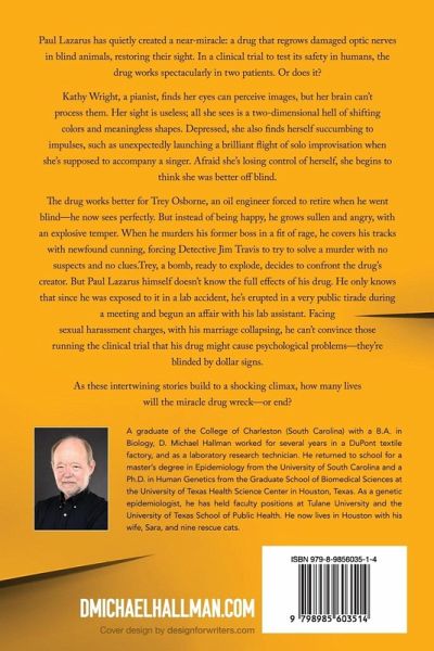 Unblinded is a thriller about a drug that gives eyesight to the blind but wrecks their lives, a drug that can restore your sight but changes your behavior, your personality-it might even make you a killer. Unblinded is a story about a scientist with a miracle drug, a blind musician who's happy as she is but takes the drug to please her father, a blind engineer who regains his sight but loses his soul, and a detective who's forced to solve a murder with no suspects and no clues. It's a thriller that will make you ask who's dangerous, who's innocent, and who's to blame-one you'll think about long after you've read it.…mehr