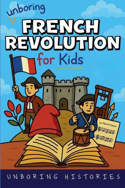 Made for Curious, Smart (and Slightly Silly) Kids (Kid Approved!) Warning: This book may cause the following effects: sudden bursts of curiosity, knowledge of interesting characters throughout history, and sudden opinion change of history. Forget the snoozefest history books filled with confusing dates and grumpy dead guys. Unboring French Revolution for Kids is the laugh-out-loud, totally visual, totally digestible guide to U.S. history your kids (and you) didn't know they needed. Packed with weird facts, brain-boosting quizzes, cool pictures, clickable videos, and activities that actually make sense, this book was built for real kids with real short attention spans and maybe even a few parents who want to finally understand what the French Revolution was really about! What's Inside This Totally Unboring Book: Bite-sized chapters that keep kids engaged without melting their brains Timelines at the end to connect the dots (because time travel isn't a real option yet) Images and illustrations that are way cooler than clipart QR codes or links to videos that explain the good stuff, fast Fun activities and short quizzes after each chapter so they actually remember it Great For:Homeschool families who are tired of boring textbooks Classrooms that want to wake students up (without shouting "pop quiz!") Parents who want a refresher without secretly Googling everything Kids ages 8-14 who like to laugh and learn (Edited by a Kid ) Anyone who thinks "history" should have more memes, more maps, and less yawning If your child ever said "history is boring~" this book is your comeback. Because history isn't boring. You just needed the Unboring version. Sample Chapter Excerpt: Unboring French Revolution for Kids: Napoleon Steps In (and Steps Over Everyone) The Revolution left France spinning like a top. Kings gone. Governments collapsing and reforming. People arguing nonstop. Who could possibly bring order to this chaos? Enter a short, ambitious general with a pointy hat: Napoleon Bonaparte. Napoleon stands on a stool to look taller, giving orders with the confidence of someone twice his size. Soldiers cheer as cannons roll by. He might not look scary, but this little general has big plans. Napoleon rose to fame by winning battles. He was a master of strategy-like a kid who always beats you at chess, but with real cannons and armies. Soon, crowds shouted his name as if he were a celebrity. The Revolution's wild chaos? Napoleon promised to control it. But controlling France wasn't enough. No, Napoleon wanted Europe too and crowned himself Emperor in 1804 (yes, he literally put the crown on his own head-talk about confidence). For years, he stomped across Europe, defeating armies and redrawing maps. But power has a way of slipping. By 1812, his army froze in Russia's icy winter, and soon enemies closed in. In 1815, Napoleon made one last comeback at the Battle of Waterloo-and lost. This time, there was no stool tall enough to save him. He was exiled to a lonely island, far from France... Ready to Start Learning Without Yawning? And that's not all! You'll also get a bonus - Interactive QR code links to videos (it's relevant, mom I promise).