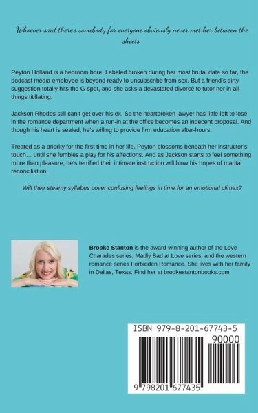 Whoever said there's somebody for everyone obviously never met her between the sheets. Peyton Holland is a bedroom bore. Labeled broken during her most brutal date so far, the podcast media employee is beyond ready to unsubscribe from sex. But a friend's dirty suggestion totally hits the G-spot, and she asks a devastated divorcé to tutor her in all things titillating. Jackson Rhodes still can't get over his ex. So the heartbroken lawyer has little left to lose in the romance department when a run-in at the office becomes an indecent proposal. And though his heart is sealed, he's willing to provide firm education after-hours. Treated as a priority for the first time in her life, Peyton blossoms beneath her instructor's touch… until she fumbles a play for his affections. And as Jackson starts to feel something more than pleasure, he's terrified their intimate instruction will blow his hopes of marital reconciliation. Will their steamy syllabus cover confusing feelings in time for an emotional climax? Unbossly Manners is the hot-and-heavy first book in the Madly Bad in Love romantic comedy series. If you like light humor, outrageous sensual tension, and fumbling adults coming into themselves, then you'll adore Brooke Stanton's under-the-desk attraction. Buy Unbossly Manners to bring the best type of sexy work home today!