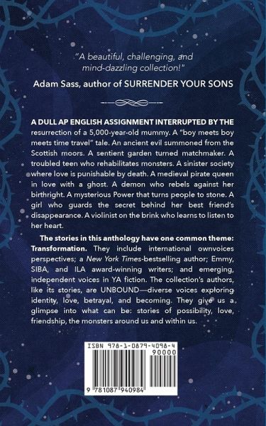 A dull AP English assignment interrupted by the resurrection of a 5,000-year-old mummy. A "boy meets boy meets time travel" tale. An ancient evil summoned from the Scottish moors. A sentient garden turned matchmaker. A troubled teen who rehabilitates monsters. A sinister society where love is punishable by death. A medieval pirate queen in love with a ghost. A demon who rebels against her birthright. A mysterious Power that turns people to stone. A girl who guards the secret behind her best friend's disappearance. A violinist on the brink who learns to listen to her heart. The stories in this anthology have one common theme: Transformation. They include international ownvoices perspectives; a New York Times-bestselling author; Emmy, SIBA, and ILA award-winning writers; and emerging, independent voices in YA fiction. The collection's authors, like its stories, are UNBOUND-diverse voices exploring identity, love, betrayal, and becoming. They give us a glimpse into what can be: stories of possibility, love, friendship, the monsters around us and within us.