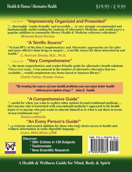 You can enjoy better health without prescription drugs with this health and wellness Guide for mind, body, and spirit Interested in learning about complementary or alternative therapies but don't know where to begin? That's the reason for this exciting new book, UnBreak Your Health(tm)! This is the complete guide to different types of alternative medical concepts, different processes and techniques and a variety of healing devices. Most mainstream medical doctors believe in the old adage that "you can't unbreak the mirror" so they try to glue your health back together with drugs. Holistic and natural therapy practitioners want to treat the real source of the problem and deal with all facets - mind, body and spirit. This complete approach to health care can produce dramatic results, often after doctors has declared there is nothing that can be done. Discover everything from Acupuncture to Zen Bodytherapy. Learn about devices from Edgar Cayce's Radiac to the newest cold laser technology. Hear from real people who've experienced these therapies and products. Find out how to maximize your wellness and prevent illness. UnBreak Your Health(tm) offers proven healing techniques from 5,000 years ago to the most modern innovations. With over 300 listings in 135 categories this is the most complete book ever published on complementary and alternative therapies. There is only one short paragraph on diets and supplements however since there are so many books already published on the subject. This new book focuses on therapies, systems and devices. What People Are Saying About UnBreak Your Health "At least 85% of the time Complementary and Alternative approaches are far safer and more effective than drugs or surgery. UnBreak your Health provides a terrific source for those interested in real health!" --C. Norman Shealy, M.D., Ph.D. "UnBreak Your Health is the most comprehensive and reader-friendly guide for alternative health solutions that I have ever read... I applaud the author for creating such a comprehensive guide." --Cherie Fisher, Reader Views "This book offers an amazing and impressive collection of valuable information to people looking to complement the conventional methods of treatment." --Karen Carnabucci, LCSW, TEP "Unbreak Your Health: The Complete Guide to Complementary & Alternative Therapies is a good overview of a number of different types of holistic mind/body/spirit healing practices." --Eric B. Robins, MD, co-author Your Hands Can Heal You "Alan Smith's book is a welcome and needed addition for those who truly desire access to heatlh and wellness information in easily digestible language and backed up by diverse experiences." --Imara, MBA, MHpm, URM Learn more and listen to free podcasts with host Alan E. Smith at www.UnbreakYourHealth.com From Loving Healing Press www.LHPress.com