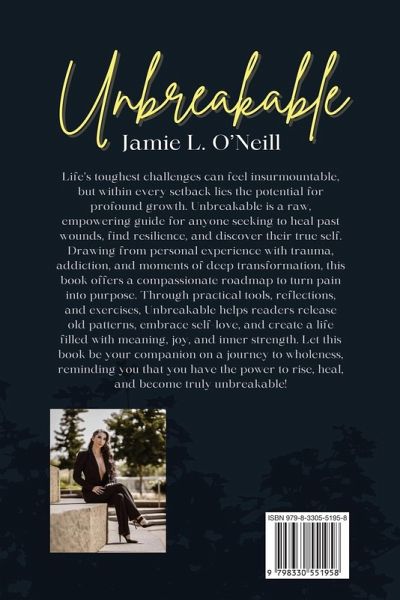 Life's toughest challenges can feel insurmountable, but within every setback lies the potential for profound growth. Unbreakable is a raw, empowering guide for anyone seeking to heal past wounds, find resilience, and discover their true self. Drawing from personal experience with trauma, addiction, and moments of deep transformation, this book offers a compassionate roadmap to turn pain into purpose. Through practical tools, reflections, and exercises, Unbreakable helps readers release old patterns, embrace self-love, and create a life filled with meaning, joy, and inner strength. Let this book be your companion on a journey to wholeness, reminding you that you have the power to rise, heal, and become truly unbreakable.