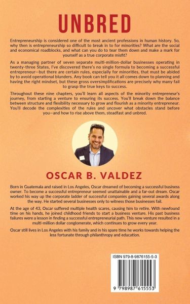 Entrepreneurship is considered one of the most ancient professions in human history. So, why then, is entrepreneurship so difficult to break into for minorities? What are the social and economical roadblocks and what can you do to tear them down and make a mark for yourself as a true corporate misfit? As a managing partner of seven separate multi-million-dollar businesses operating in twenty-three States, I've discovered there's no single formula to becoming a successful entrepreneur - but there are certain rules, especially for minorities, that must be abided by to avoid operational blunders. Any book can tell you it all comes down to planning and having the right mindset, but these gross oversimplifications are precisely why many fail to grasp the true keys to success. Throughout these nine chapters you'll learn all aspects of the minority entrepreneur's journey, from starting a venture to ensuring its success. You'll break down the balance between structure and flexibility necessary to grow and flourish as a minority entrepreneur. You'll decode the complexities of the rules and uncover what obstacles stand before you - and how to rise above them, steadfast and unbred.