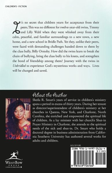 It's no secret that children yearn for acceptance from their peers. This was no different for twelve-year-old twins, Timmy and Lilly Wahl when they were whisked away from their calm, peaceful, and familiar surroundings to a new town, a new home, and a new school in Bridle Path. Yet they, unlike their peers, were faced with demanding challenges handed down to them by the class bully, Billy Ormsby. How did the twins learn to break the chain of bullying, bring the class bully to his knees, and strengthen the bond of friendship among them? Journey with the twins in Unbridled to experience God's mysterious works and ways. Lives will be changed and saved.