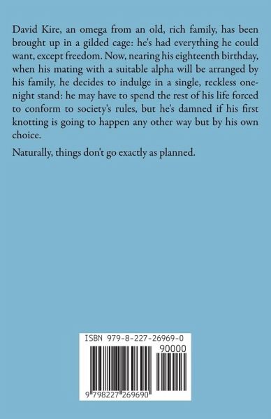 David Kire, an omega from an old, rich family, has been brought up in a gilded cage: he's had everything he could want, except freedom. Now, nearing his eighteenth birthday, when his mating with a suitable alpha will be arranged by his family, he decides to indulge in a single, reckless one-night stand: he may have to spend the rest of his life forced to conform to society's rules, but he's damned if his first knotting is going to happen any other way but by his own choice. Naturally, things don't go exactly as planned.