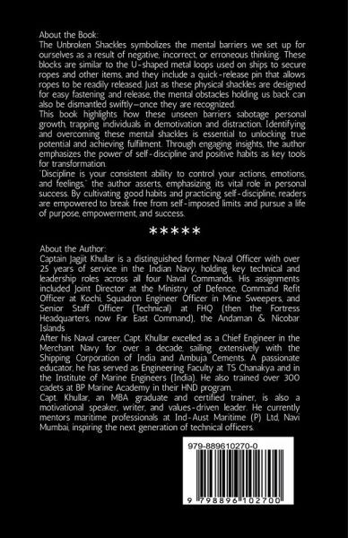 The Unbroken Shackles symbolizes the mental barriers we set up for ourselves as a result of negative, incorrect, or erroneous thinking. These blocks are similar to the U-shaped metal loops used on ships to secure ropes and other items, and they include a quick-release pin that allows ropes to be readily released. Just as these physical shackles are designed for easy fastening and release, the mental obstacles holding us back can also be dismantled swiftly-once they are recognized. This book highlights how these unseen barriers sabotage personal growth, trapping individuals in demotivation and distraction. Identifying and overcoming these mental shackles is essential to unlocking true potential and achieving fulfilment. Through engaging insights, the author emphasizes the power of self-discipline and positive habits as key tools for transformation. "Discipline is your consistent ability to control your actions, emotions, and feelings," the author asserts, emphasizing its vital role in personal success. By cultivating good habits and practicing self-discipline, readers are empowered to break free from self-imposed limits and pursue a life of purpose, empowerment, and success.