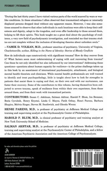 The contributors to this volume are keenly aware that mental health professionals, while well trained to identify and treat psychopathology, are insufficiently informed or cognizant of human resilience, of how, and of what, intrapsychic, interpersonal, and psychosocial factors are operative in adaptive coping with and recovering from trauma. These authors, several of whom themselves were subjected to severe trauma, address the matter of resilience from the vantage point of their own personal and clinical experiences.