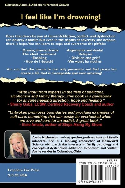 I feel like I'm drowning! Does that describe you at times? Addiction, conflict, and dysfunction can destroy a family. But even in the depths of adversity and despair, there is hope. You can learn to cope and overcome the pitfalls: Drama, drama, drama The silent treatment Enabling How do I detach? Arguments and denial Relapses Division and grief We won't be victims You can find the means to not only persevere and find peace but create a life that is manageable and even amazing!