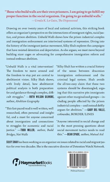 "In the wake of post-9/11 xenophobia, Obama's record-level deportations, Trump's immigration policies, and the 2020 uprisings for racial justice, the US remains entrenched in a circular discourse regarding migrant justice. As organizer Silky Shah argues in Unbuild Walls, we must move beyond building nicer cages or advocating for comprehensive immigration reform. Our only hope for creating a liberated society for all, she insists, is abolition. Unbuild Walls dives into US immigration policy and its relationship to mass incarceration, from the last forty years up to the present, showing how the prison-industrial complex and immigration enforcement are intertwined systems of repression. Incorporating historical and legal analyses, Shah's personal experience as an organizer, as well as stories of people, campaigns, organizations, and localities that have resisted detention and deportation, Shah assesses the movement's strategies, challenges, successes, and shortcomings. Featuring a foreword by Amna A. Akbar, Unbuild Walls is an expansive and radical intervention, bridging the gaps between movements for immigrant rights, racial justice, and prison abolition." --