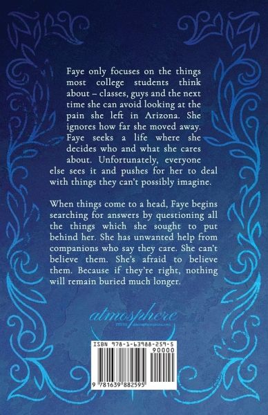 Faye only focuses on the things most college students think about - classes, guys and the next time she can avoid looking at the pain she left in Arizona. She ignores how far she moved away. Faye seeks a life where she decides who and what she cares about. Unfortunately, everyone else sees it and pushes for her to deal with things they can't possibly imagine. When things come to a head, Faye begins searching for answers by questioning all the things which she sought to put behind her. She has unwanted help from companions who say they care. She can't believe them. She's afraid to believe them. Because if they're right, nothing will remain buried much longer.