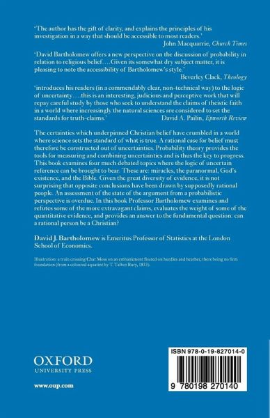 The certainties which underpinned Christian belief have crumbled in a world where science sets the standard of what is true. A rational case for belief must therefore be constructed out of uncertainties. Probability theory provides the tools for measuring and combining uncertainties and is thus the key to progress. This book examines four much debated topics where the logic of uncertain reference can be brought to bear. These are: miracles, the paranormal, God's existence, and the Bible. Given the great diversity of evidence, it is not surprising that opposite conclusions have been drawn by supposedly rational people. An assessment of the state of the argument from a probabilistic perspective is overdue. In this book Professor Bartholomew examines and refutes some of the more extravagant claims, evaluates the weight of some of the quantitative evidence, and provides an answer to the fundamental question: can a rational person be a Christian?