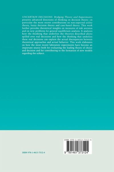 Uncertain Decisions: Bridging Theory and Experiments presents advanced directions of thinking on decision theory - in particular the more recent contributions on non-expected utility theory, fuzzy decision theory and case-based theory. This work also provides theoretical insights on measures of risk aversion and on new problems for general equilibrium analysis. It analyzes how the thinking that underlies the theories described above spills over into real decisions, and how the thinking that underlies these real decisions can explain the discrepancies between theoretical approaches and actual behavior. This work elaborates on how the most recent laboratory experiments have become an important source both for evaluating the leading theory of choice and decision, and for contributing to the formation of new models regarding the subject.
