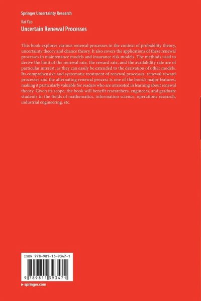 This book explores various renewal processes in the context of probability theory, uncertainty theory and chance theory. It also covers the applications of these renewal processes in maintenance models and insurance risk models. The methods used to derive the limit of the renewal rate, the reward rate, and the availability rate are of particular interest, as they can easily be extended to the derivation of other models. Its comprehensive and systematic treatment of renewal processes, renewal reward processes and the alternating renewal process is one of the book's major features, making it particularly valuable for readers who are interested in learning about renewal theory. Given its scope, the book will benefit researchers, engineers, and graduate students in the fields of mathematics, information science, operations research, industrial engineering, etc.