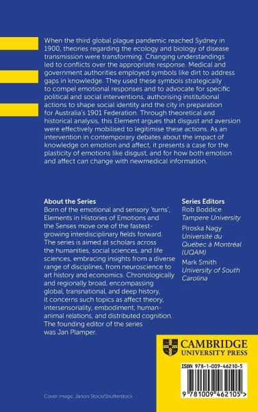 When the third global plague pandemic reached Sydney in 1900, theories regarding the ecology and biology of disease transmission were transforming. Changing understandings led to conflicts over the appropriate response. Medical and government authorities employed symbols like dirt to address gaps in knowledge. They used these symbols strategically to compel emotional responses and to advocate for specific political and social interventions, authorising institutional actions to shape social identity and the city in preparation for Australia's 1901 Federation. Through theoretical and historical analysis, this Element argues that disgust and aversion were effectively mobilised to legitimise these actions. As an intervention in contemporary debates about the impact of knowledge on emotion and affect, it presents a case for the plasticity of emotions like disgust, and for how both emotion and affect can change with new medical information.