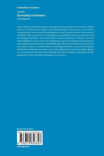 In this book the author develops a new approach to uncertainty in economics, which calls for a fundamental change in the methodology of economics. It provides a comprehensive overview and critical appraisal of the economic theory of uncertainty and shows that uncertainty was originally conceptualized both as an epistemic and an ontological problem. As a result of the economic professions' attempt to become acknowledged as a science, the more problematic aspect of ontological uncertainty has been neglected and the subjective probability approach to uncertainty became dominant in economic theory. A careful analysis of ontological theories of uncertainty explains the blindness of modern economics to economic phenomena such as instability, slumps or excessive booms. Based on these findings the author develops a new approach that legitimizes a New Uncertainty Paradigm in economics.