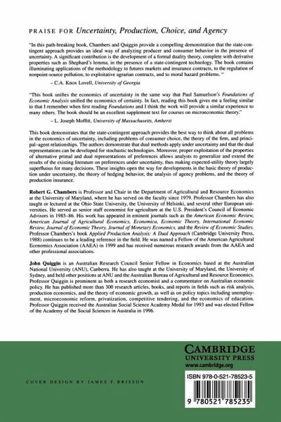 This book demonstrates that the state-contingent approach provides the best way to think about all problems in the economics of uncertainty, including problems of consumer choice, the theory of the firm, and principal agent relationships. The authors demonstrate that dual methods apply under uncertainty and that the dual representations can be developed for stochastic technologies. Moreover, proper exploitation of the properties of alternative primal and dual representations of preferences allows analysts to generalize and extend the results of the existing literature on preferences under uncertainty, thus making expected-utility theory largely superfluous for many decisions. These insights open the way for developments in the basic theory of production under uncertainty, the theory of hedging behavior, the analysis of agency problems and the theory of production insurance.
