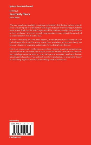 This is an introductory textbook on uncertainty theory, uncertain programming, uncertain statistics, uncertain risk analysis, uncertain reliability analysis, uncertain set, uncertain logic, uncertain inference, uncertain process, uncertain calculus, and uncertain differential equation. This textbook also shows applications of uncertainty theory toscheduling, logistics, networks, data mining, control, and finance.