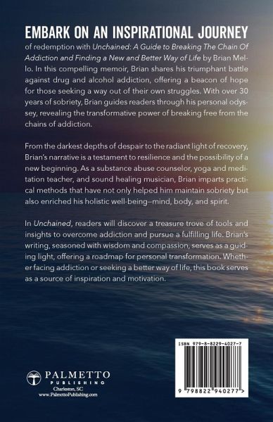 Breaking Chains, Embracing Freedom: A Journey from Addiction to Empowerment. Embark on a life-changing odyssey with Unchained: A Guide to Breaking The Chain Of Addiction and Finding a New and Better Way of Life by Brian Mello. In this compelling non-fiction memoir, Brian shares his personal triumph over drug and alcohol addiction, offering a roadmap to liberation for anyone seeking positive transformation. With over 30 years of sobriety, Brian, now a substance abuse counselor, yoga, and meditation teacher, and sound healing musician, delivers a message of hope, strength, and the limitless possibilities of a reimagined life. Discover the inspirational journey of a man who transcended the depths of addiction to emerge as a beacon of resilience. Brian's narrative, rich with vulnerability and wisdom, takes you through the challenges of his own battle with addiction and illuminates the path to recovery. From the shadows of despair, he emerged into the light, offering a guiding hand to those still wrestling with their demons. Unchained is more than a memoir; it's a practical guide to personal reinvention. Brian imparts valuable insights, sharing the strategies and practices that empowered him to break free from the chains that bound him. From holistic healing methods to mental and spiritual growth, this book is a comprehensive toolkit for overcoming obstacles and creating a life of purpose and fulfillment. This compelling narrative resonates with readers seeking inspiration, whether battling addiction or desiring a transformative life change. Brian's authenticity, coupled with his expertise as a counselor and holistic practitioner, makes Unchained a compelling read for anyone ready to break free from their own limitations and embrace a new and better way of life.