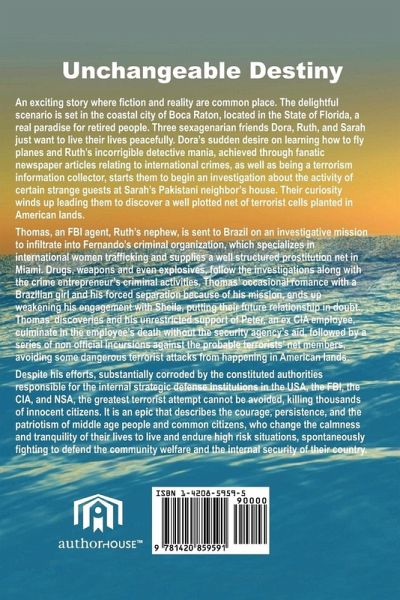 An exciting story where fiction and reality are common place. The delightful scenario is set in the coastal city of Boca Raton, located in the State of Florida, a real paradise for retired people. Three sexagenarian friends Dora, Ruth, and Sarah just want to live their lives peacefully. Dora's sudden desire on learning how to fly planes and Ruth's incorrigible detective mania, achieved through fanatic newspaper articles relating to international crimes, as well as being a terrorism information collector, starts them to begin an investigation about the activity of certain strange guests at Sarah's Pakistani neighbor's house. Their curiosity winds up leading them to discover a well plotted net of terrorist cells planted in American lands. Thomas, an FBI agent, Ruth's nephew, is sent to Brazil on an investigative mission to infiltrate into Fernando's criminal organization, which specializes in international women trafficking and supplies a well structured prostitution net in Miami. Drugs, weapons and even explosives, follow the investigations along with the crime entrepreneur's criminal activities. Thomas' occasional romance with a Brazilian girl and his forced separation because of his mission, ends up weakening his engagement with Sheila, putting their future relationship in doubt. Thomas' discoveries and his unrestricted support of Peter, an ex CIA employee, culminate in the employee's death without the security agency's aid, followed by a series of non official incursions against the probable terrorists' net members, avoiding some dangerous terrorist attacks from happening in American lands. Despite his efforts, substantially corroded by the constituted authorities responsible for the internal strategic defense institutions in the USA, the FBI, the CIA, and NSA, the greatest terrorist attempt cannot be avoided, killing thousands of innocent citizens. It is an epic that describes the courage, persistence, and the patriotism of middle age people and common citize