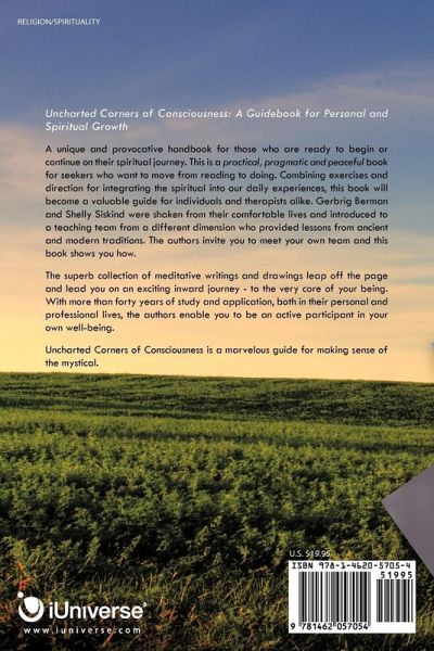 Uncharted Corners of Consciousness: A Guidebook for Personal and Spiritual Growth A unique and provocative handbook for those who are ready to begin or continue on their spiritual journey. This is a practical, pragmatic and peaceful book for seekers who want to move from reading to doing. Combining exercises and direction for integrating the spiritual into our daily experiences, this book will become a valuable guide for individuals and therapists alike. Gerbrig Berman and Shelly Siskind were shaken from their comfortable lives and introduced to a teaching team from a different dimension who provided lessons from ancient and modern traditions. The authors invite you to meet your own team and this book shows you how. The superb collection of meditative writings and drawings leap off the page and lead you on an exciting inward journey - to the very core of your being. With more than forty years of study and application, both in their personal and professional lives, the authors enable you to be an active participant in your own well-being. Uncharted Corners of Consciousness is a marvelous guide for making sense of the mystical.
