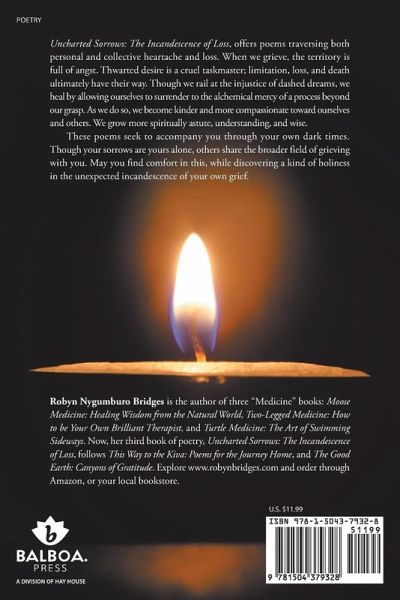 Uncharted Sorrows: The Incandescence of Loss, offers poems traversing both personal and collective heartache and loss. When we grieve, the territory is full of angst. Thwarted desire is a cruel taskmaster; limitation, loss, and death ultimately have their way. Though we rail at the injustice of dashed dreams, we heal by allowing ourselves to surrender to the alchemical mercy of a process beyond our grasp. As we do so, we become kinder and more compassionate toward ourselves and others. We grow more spiritually astute, understanding, and wise. These poems seek to accompany you through your own dark times. Though your sorrows are yours alone, others share the broader field of grieving with you. May you find comfort in this, while discovering a kind of holiness in the unexpected incandescence of your own grief.
