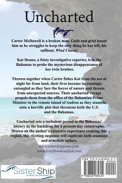 Carter McDowell is a broken man. Guilt and grief haunt him as he struggles to keep the only thing he has left, his sailboat Wind Chaser. Kat Deano, a feisty investigative reporter, is in the Bahamas to probe the mysterious disappearance of her twin brother. Thrown together when Carter fishes Kat from the sea at night far from land, their lives become increasingly entangled as they face the forces of nature and threats from unexpected sources. Their uncharted voyage propels them from the office of the Bahamian Prime Minister to the remote island of Andros as they stumble onto a horrific plot that threatens both the U.S. and the Bahamas. Uncharted sets a turbulent period in the Bahamas' history as the backdrop for a present-day catastrophe. Drawn on the author's extensive experience cruising this region, this riveting suspense will captivate both seasoned and armchair sailors.