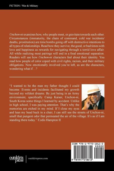 Mr. Hampton emails of continuous comments on sportswriter's/reporter's newspaper articles amused his friend. He also saw Hamp's raw talent of detailing facts or description of events. So much so that he noted the commentary was better than the articles. Our author took his friends' critique to heart. Already a very opinionated individual, he realized he loved to write comments on various subjects especially social issues of the day. He began publishing a newsletter that included blogs on a range of subjects, always using satire as way of explaining social ills/political comments. That led to authoring a story of his military assignment to South Korea. To date, Mr. Hampton's written five books. But his story of a boy arriving in Korea while leaving fourteen months later as a grown man is his first. In his semi-autobiographical debut, Author Codis Hampton II takes the reader through his experience as a seventeen-year-old African-American GI stationed in South Korea during the Civil Rights movement of the 1960s. Unchon-ni is a riveting story that looks back on his childhood, family environment to bring you forward to then and there. The story is a journey where the author shares his conflict between duty, country, and heritage. You're captivated by the love affair he finds with a village camp town girl. Add the suspense, mystery, adventure he experienced in a war-torn community as a Brother of Arms, one is left wondering what is next in his young life. A must-read… Yes, Unchon-ni exceeds the classic tale of boy meets girl, etc. along with so many more stereotypes of people, places, events. Individuals, with varying personalities of interest who appear-disappear in our subject's life, is a study in people. It's as if a reader has stumbled onto an exciting roller coaster ride with various stops that peak one's interest.
