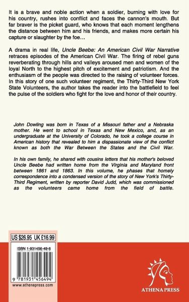 It is a brave and noble action when a soldier, burning with love for his country, rushes into conflict and faces the cannon's mouth. But far braver is the pickett guard, who knows that each moment lengthens the distance between him and his friends, and makes more certain his capture or slaughter by the foe... A drama in real life, 'Uncle Beebe: An American Civil War Narrative' retraces episodes of the American Civil War. The firing of rebel guns reverberating through hills and valleys aroused men and women of the loyal North to the highest pitch of excitment and patriotism. And the enthusiasm of the people was directed to the raising of volunteer forces. In this story of one such volunteer regiment, the Thirty-Third New York State Volunteers, the author takes the reader into the battlefield to feel the pulse of the soldiers who fight for the love and honor of their country.