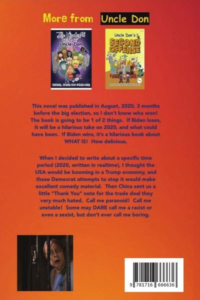 Better than Television. The 3rd color comedy novel by humorist Donald Smalley. 386 incredible pages of stories, spoofs and articles to keep you entertained for hours. Released before the 2020 US election, this comedy extravaganza focuses on the Year 2020 (there about) and the election that hadn't happened yet. Regardless of the election outcome, this book is a fun read. 40 features in all. Written with old publications like MAD and National Lampoon in mind. Many conservative views, stories and features about some of the not-so-favorite people and things. Great relevance to Black Rights, Antifa, Coronavirus, Human Trafficking, The Constitution, Masks, Space, Sovereignty, Celebrities, Cancel Culture, Fake News, a beleaguered president, an ice cream-stuffed Speaker of the House, socialists everywhere, democracy in jeopardy, with mail-in voting possibly stealing the show. This book of laughs will be a benchmark of the time period we are all living in.