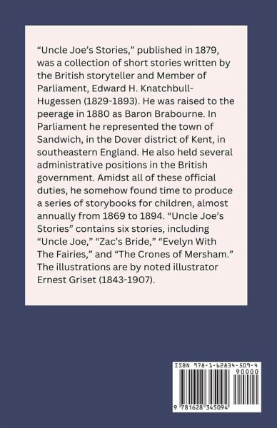 Unique Elements About the Author Historical Context - Timeline Commentaries A CHILDREN'S STORYBOOK by EDWARD HUGESSEN KNATCHBULL-HUGESSEN. "Uncle Joe's Stories," by BRITISH author EDWARD HUGESSEN KNATCHBULL-HUGESSEN is a book of short stories of medieval adventures and fairy tales, first published in 1879 in the UNITED KINGDOM. Classic adventure stories for children, filled with thrilling adventure and fairy mysteries. Sneak Peak "I had almost made up my mind to write no more Fairy Tales, to let sprites and elves alone for ever, and to refrain from any further research into the dark and mysterious doings of warlocks and witches in the olden time. But fate is stronger than the will of man, and I am powerless to resist the influences brought to induce-nay, to compel-me to alter my determination." Synopsis This book of six short stories, of novella proportions, begins with the story of the book's title, "Uncle Joe," an adventuresome traveller known as a compelling storyteller. Other stories in this volume include: "Zac's Bride," "Evelyn With The Fairies," and "The Crones of Mersham." Title Details ¿Originally published in 1879 Collection of short stories